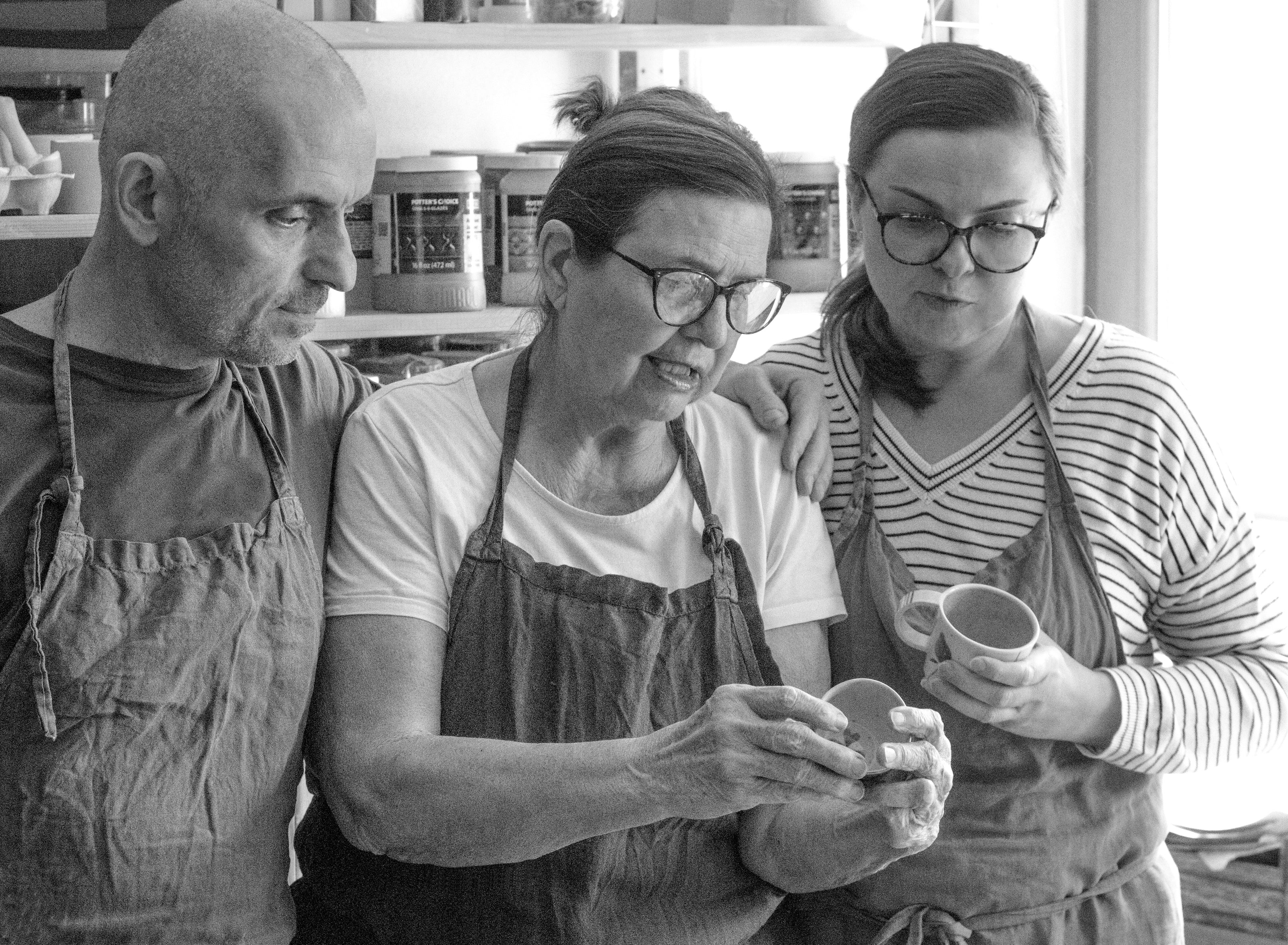 Jsme rodinný tým, který tvoří akademická sochařka Zdeňka Vydrová a Vendula a Ondřej Volkmerovi, zakladatelé lněné značky Vydra&Volkmer. V našem společném domově v Jizerských horách jsme si zřídili malý ateliér s velkou pecí a výhledem do přírody.