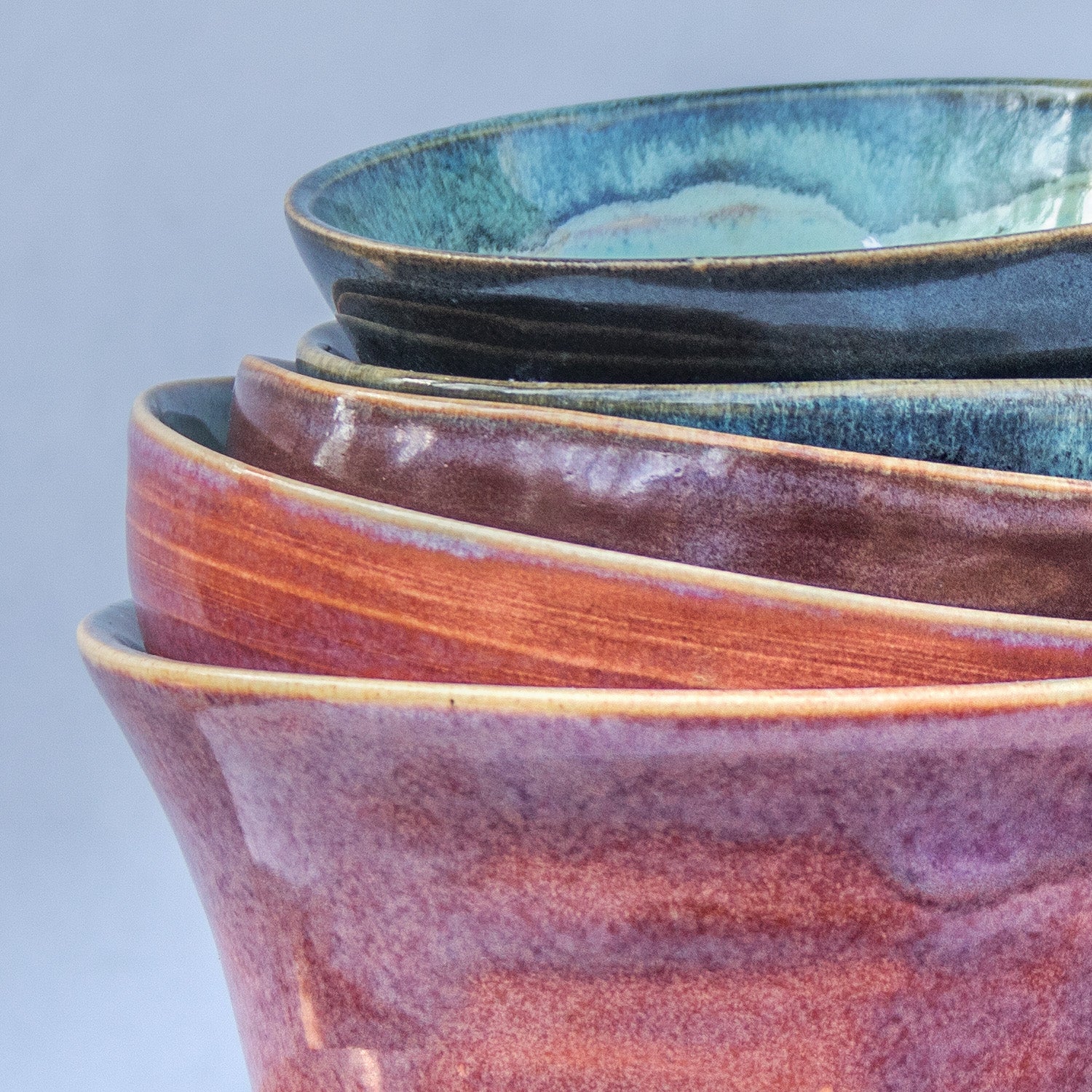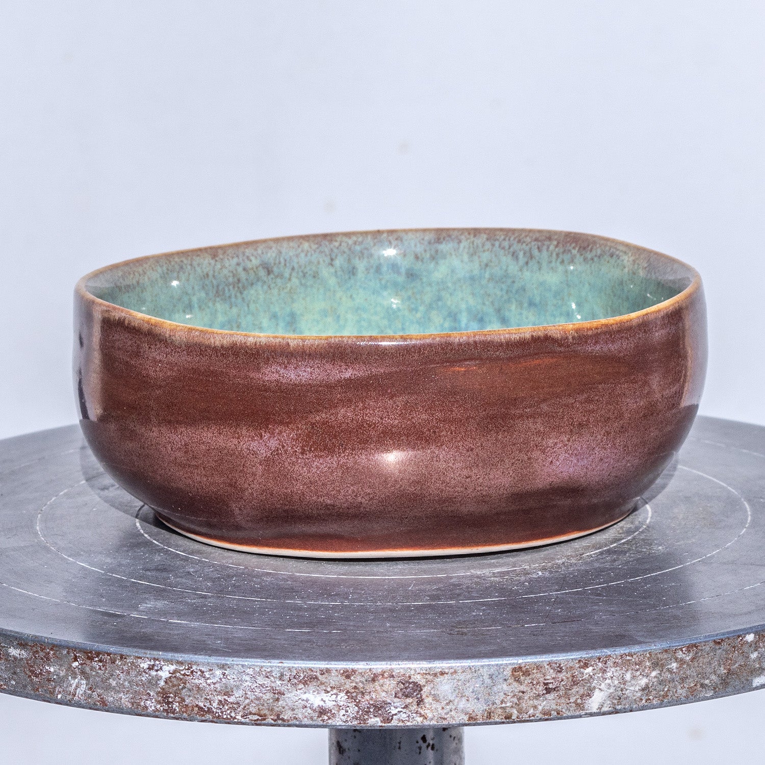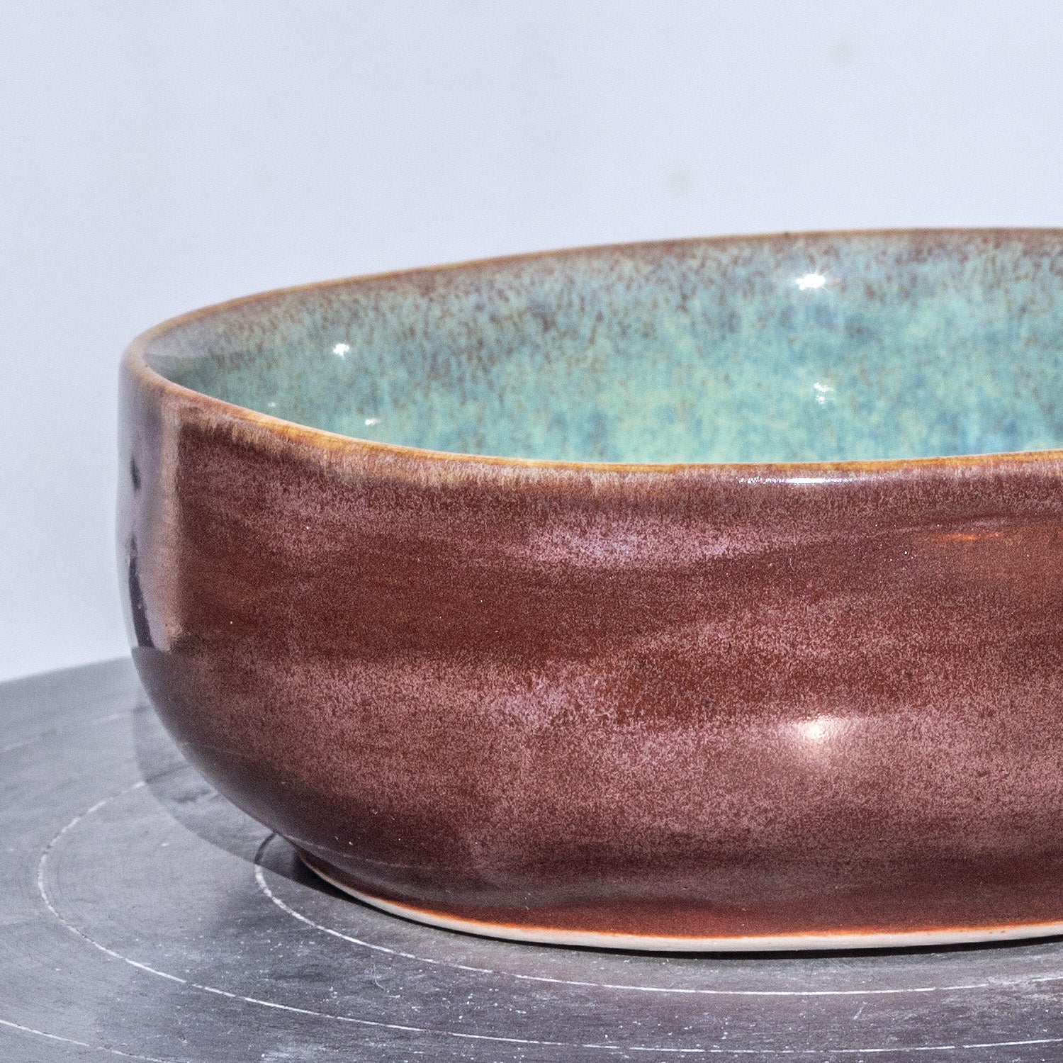 Porcelánová miska točená na hrnčířském kruhu glazovaná efektními glazurami s výrazným mramorováním.