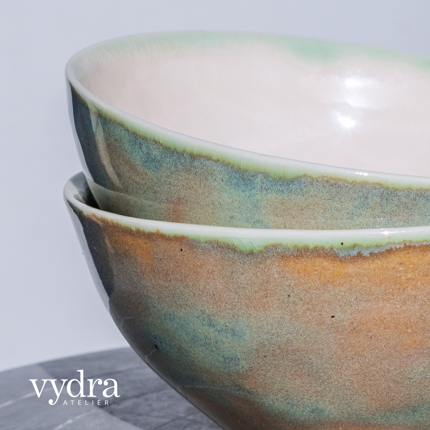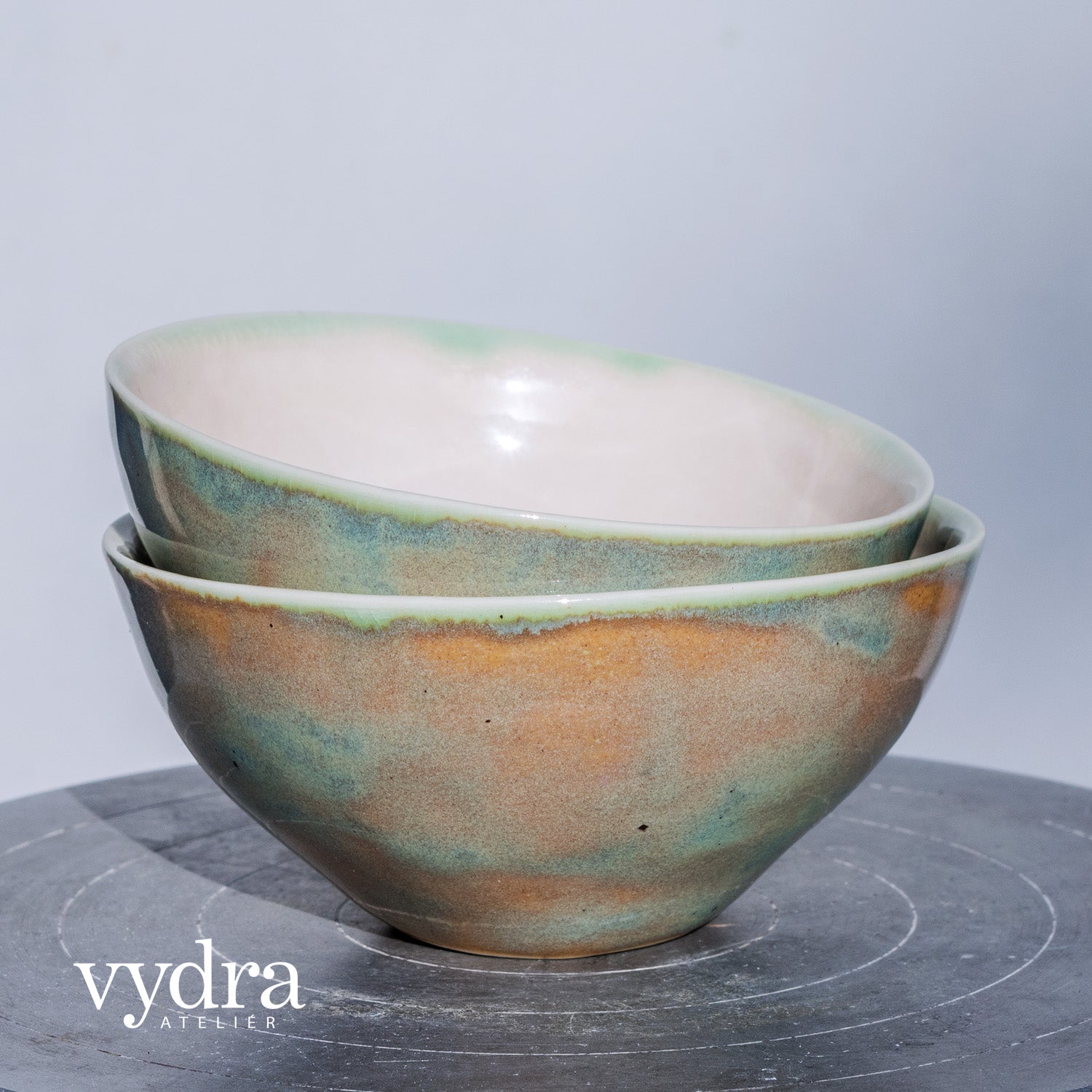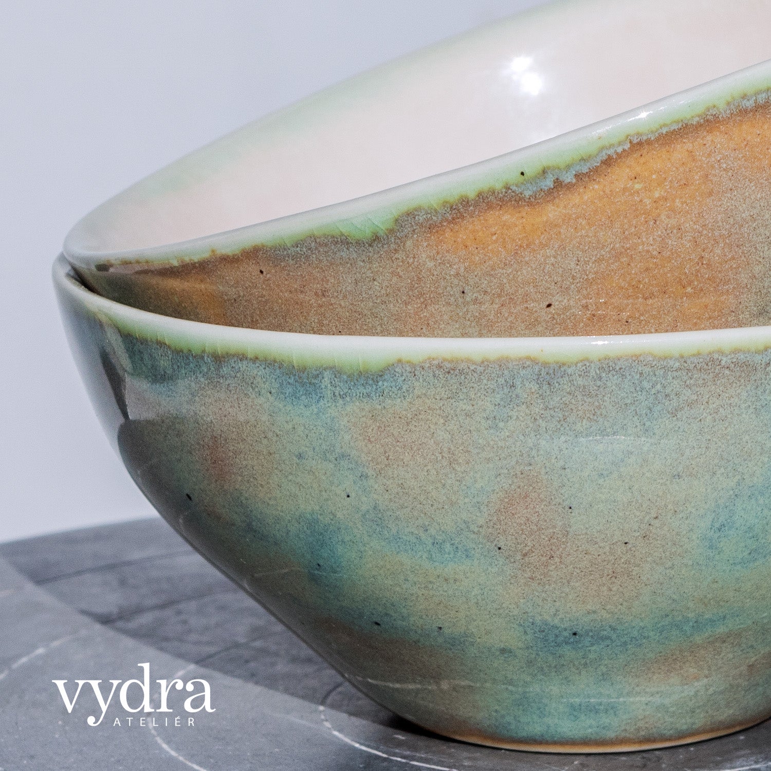 Porcelánová miska v pastelových barvách. Použité glazury jsou polotransparentní s kraklemi a efektní mramorované.