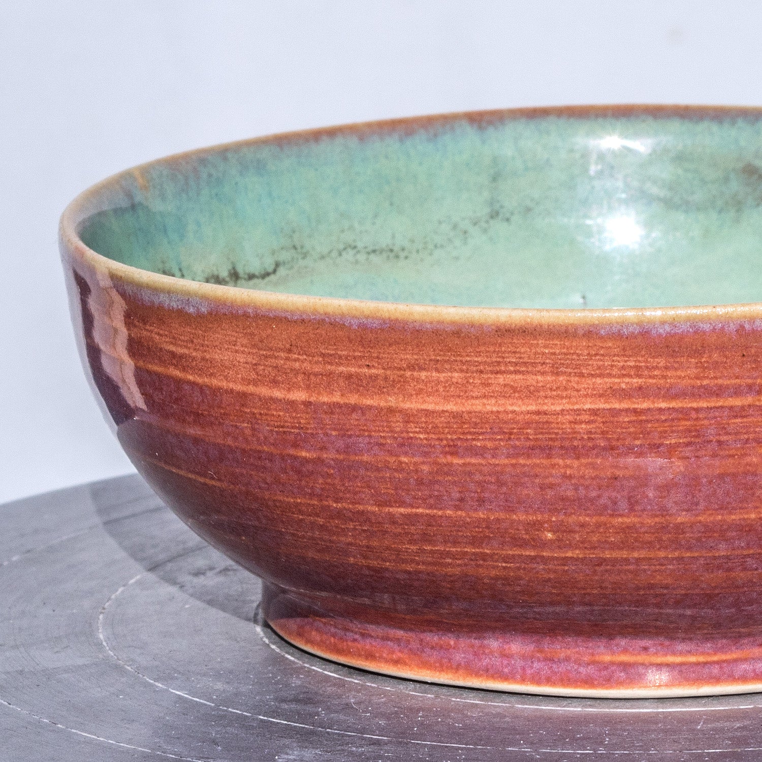 Porcelánová miska točená na hrnčířském kruhu glazovaná efektními glazurami s výrazným mramorováním.